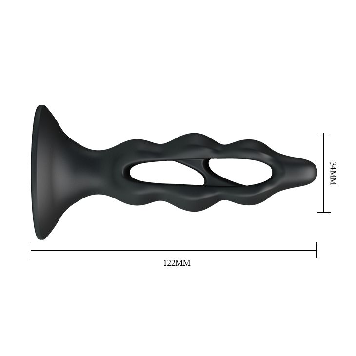 Анатомической формы анальная пробка с узкой верхушкой и расширяющейся нижней частью. В середине есть эластичная перегородка, которая позволяет пробке складываться, для легкого введения. Шелковистая поверхность обеспечивает плавное введение и нежную стимуляции анальной области.