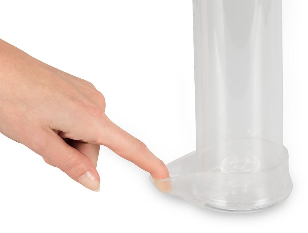 Прозрачная автоматическая вакуумная помпа для пениса с серебристой панелью управления с 3 кнопками. Помпа также имеет измерительную шкалу в сантиметрах и дюймах. Перезаряжается с помощью прилагаемого USB-кабеля. Рабочая длина - 20 см.