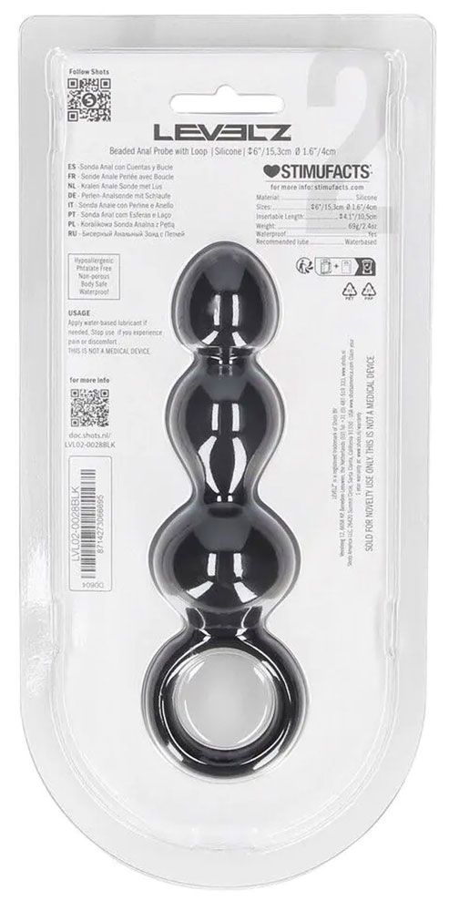 Черная анальная елочка Beaded Silicone Anal Probe with Loop из коллекции Levelz от Shots Media BV создана для аккуратной и постепенной анальной стимуляции. Подходит тем, кто хочет мягко разнообразить интимную жизнь и комфортно попробовать анальные ощущения.