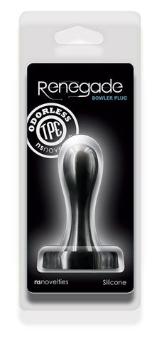 Черная анальная пробка Bowler Plug SM. Имеет широкое ограничительное основание для безопасности использования.