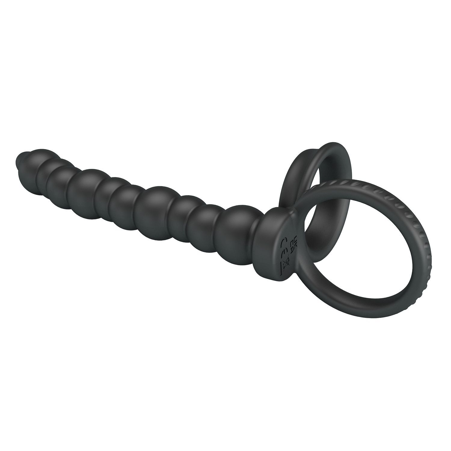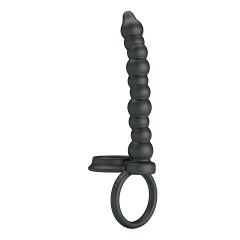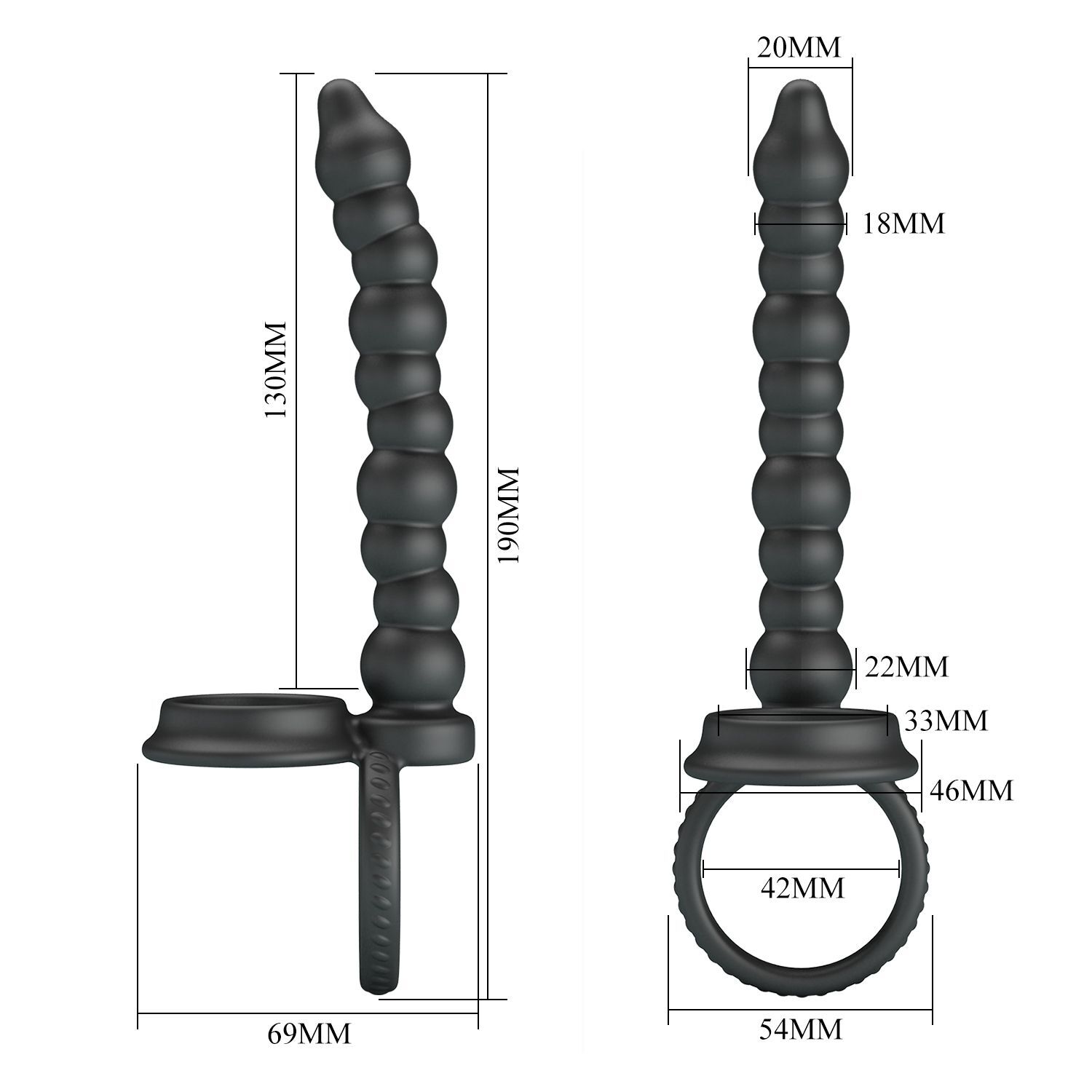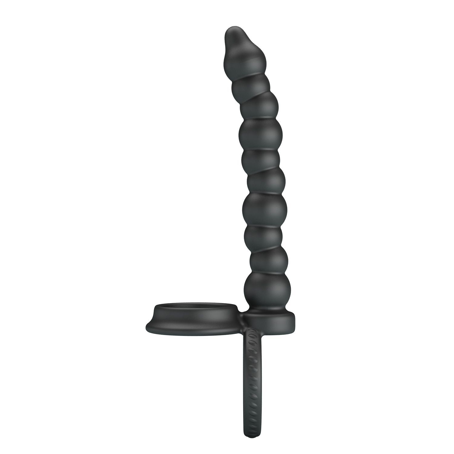 Черная насадка на пенис для двойного проникновения. Это изделие выполнено из мягкого и шелковистого силикона и представляет собой комбинированный элемент — кольцо для пениса и мошонки для надежной фиксации, а также анальный стимулятор для стимуляции партнёрши. Зафиксировав насадку на основании члена, можно проникать пенисом в вагину, а стволом игрушки - в анус женщины. Рабочая длина - 13 см. Диаметр кольца под мошонку - 4,2 см.