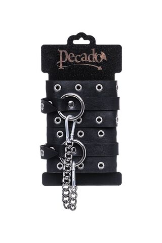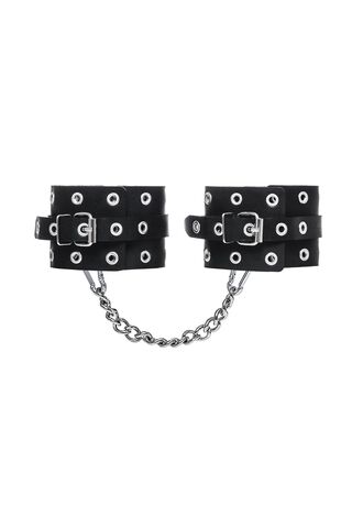 Эти однослойные кожаные оковы с контрастной строчкой красного цвета могут стать стильным аксессуаром, а могут послужить вашим целям по своему прямому назначению. Частичное обездвиживание и невозможность двигать руками или ногами дают вам полную власть над партнером – взрослые игры для взрослых. Наличие двух колец и карабинов, соединенных между собой кожаным ремешком, позволяет использовать изделие как раздельно – аксессуар-манжеты, так и как оковы для фиксации. К широким металлическим кольцам также можно присоединить и другие аксессуары при помощи карабинов. Благодаря универсальному размеру оковы могут использоваться и мужчинами, и женщинами. Размер легко регулируется с помощью металлических пряжек, органично вписывающихся в общий стиль. Длина манжет - 25 см, ширина - 6,5 см. Длина сцепки - 17 см.