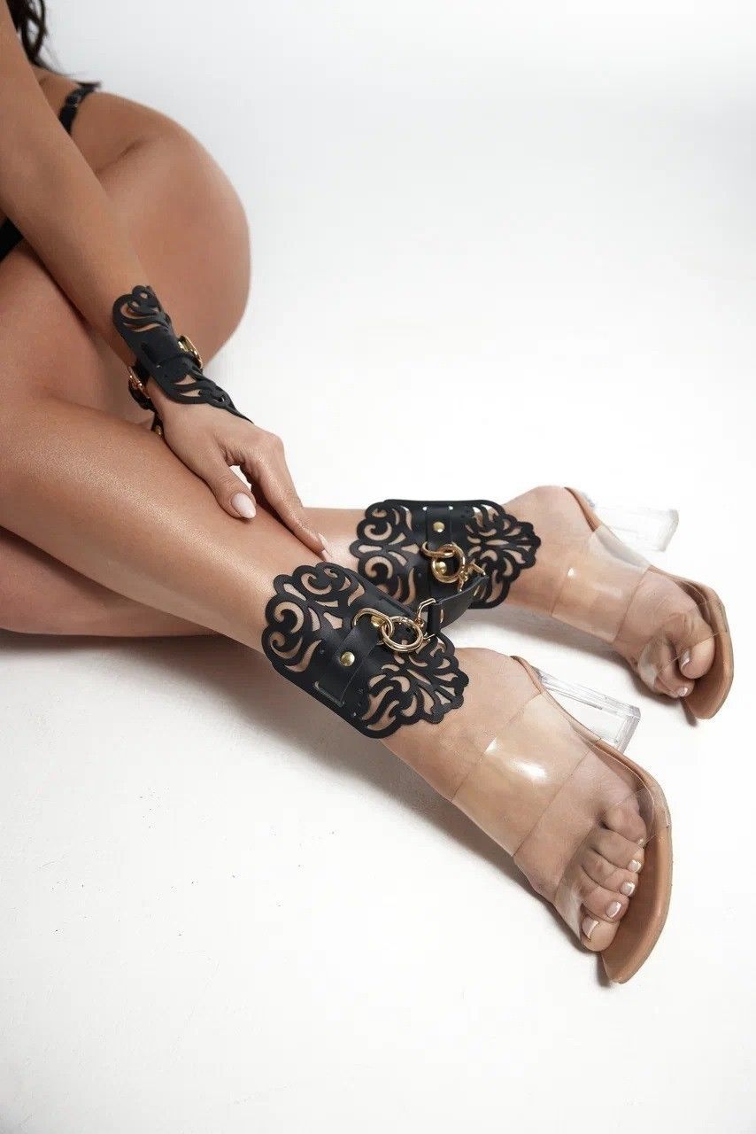 Оковы фигурные из натуральной кожи, украшенные узорами. Каждый элемент дизайна тщательно проработан, чтобы подчеркнуть красоту и элегантность изделия. Золотистая фурнитура, сверкающая на фоне черной кожи, добавляет утонченности и изысканности. Полукольцо, расположенное посередине, предоставляет дополнительные возможности для фиксации рук с помощью соединительного элемента с двумя карабинами, который идет в комплекте. Доставляется в фирменной упаковке в виде брендированной деревянной подложки.
