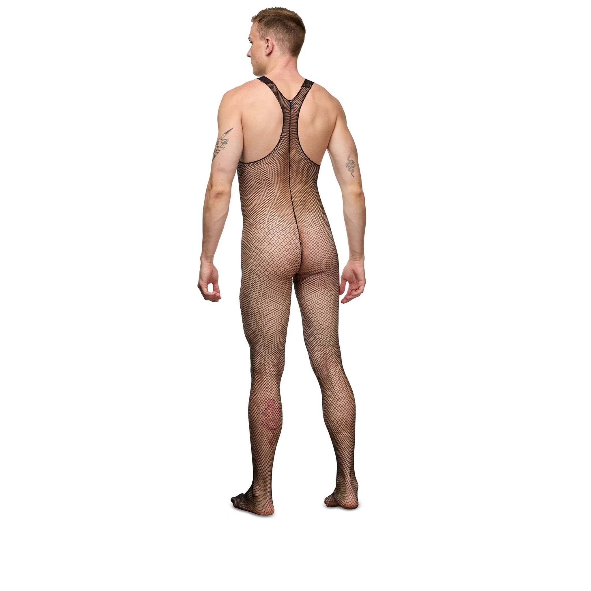 Черный мужской кэтсьюит-сетка.