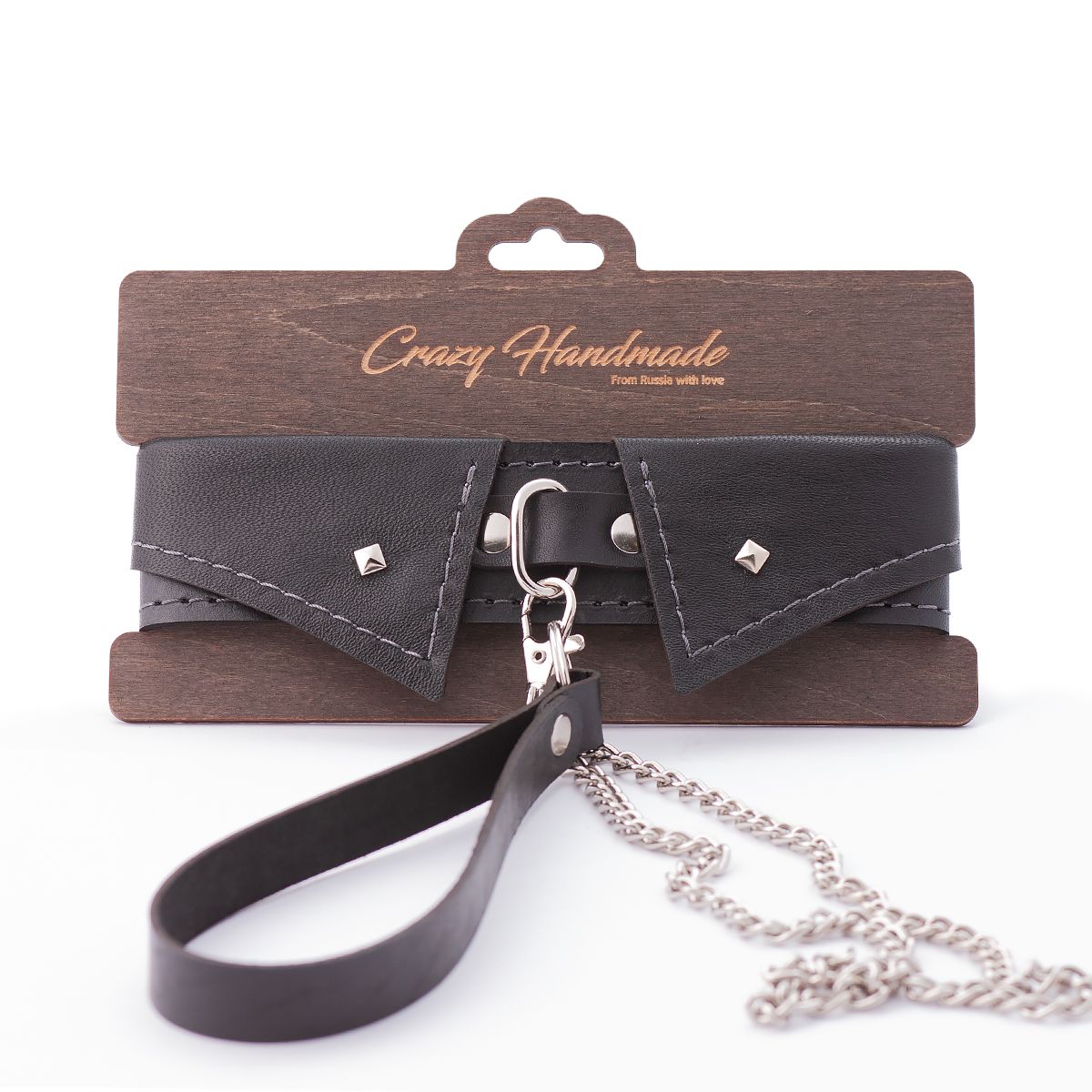 Черный ошейник-воротничок с металлическим поводком от Crazy Handmade создан для любителей БДСМ-атрибутики и ролевых игр, которые ценят натуральные материалы и аккуратный внешний вид аксессуаров. Комплект помогает подчеркнуть подчинение партнера и добавить в сценарий отношений больше контроля и эротического напряжения.