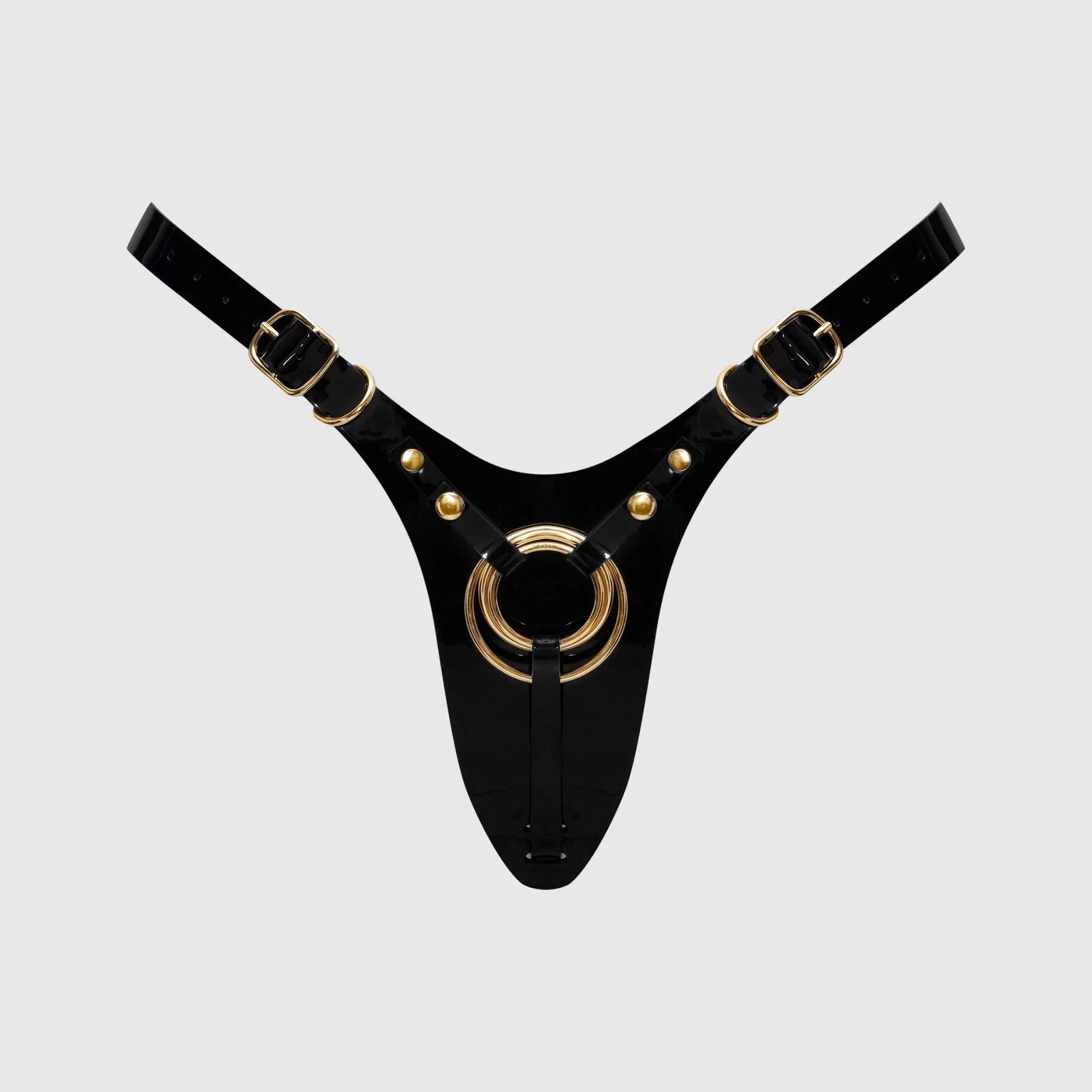 Роскошный пояс для страпона Fabulous бросает вызов условностям, переосмысливая классические стринги через призму бескомпромиссного гламура. Каждая деталь тщательно продумана: минималистичная спинка-стринги деликатно подчеркивает линию ягодиц, а глянцевое лаковое покрытие придает люксовый вид. Регулируемые лямки обеспечивают идеальную посадку и полную свободу движений. Три сменных металлических кольца гарантируют надежное крепление фаллоимитаторов разного размера. Диаметр колец - 3,5, 4 и 5 см.