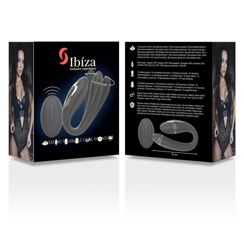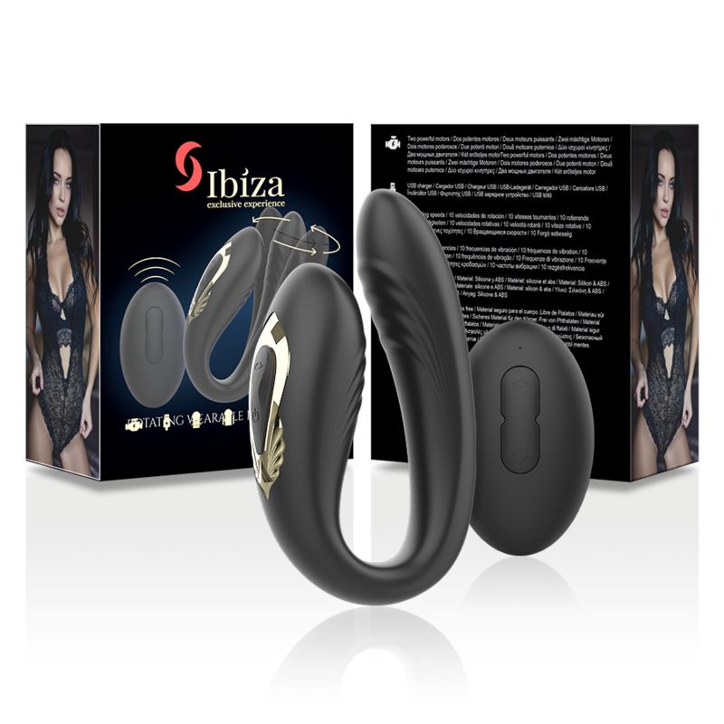 Черный вибратор для пар с ротацией и пультом ДУ от бренда Ibiza создан для одновременной стимуляции клитора и точки G. Он подойдет тем, кто хочет разнообразить близость, усилить ощущения во время соло-игр или разделить управление игрушкой с партнером.