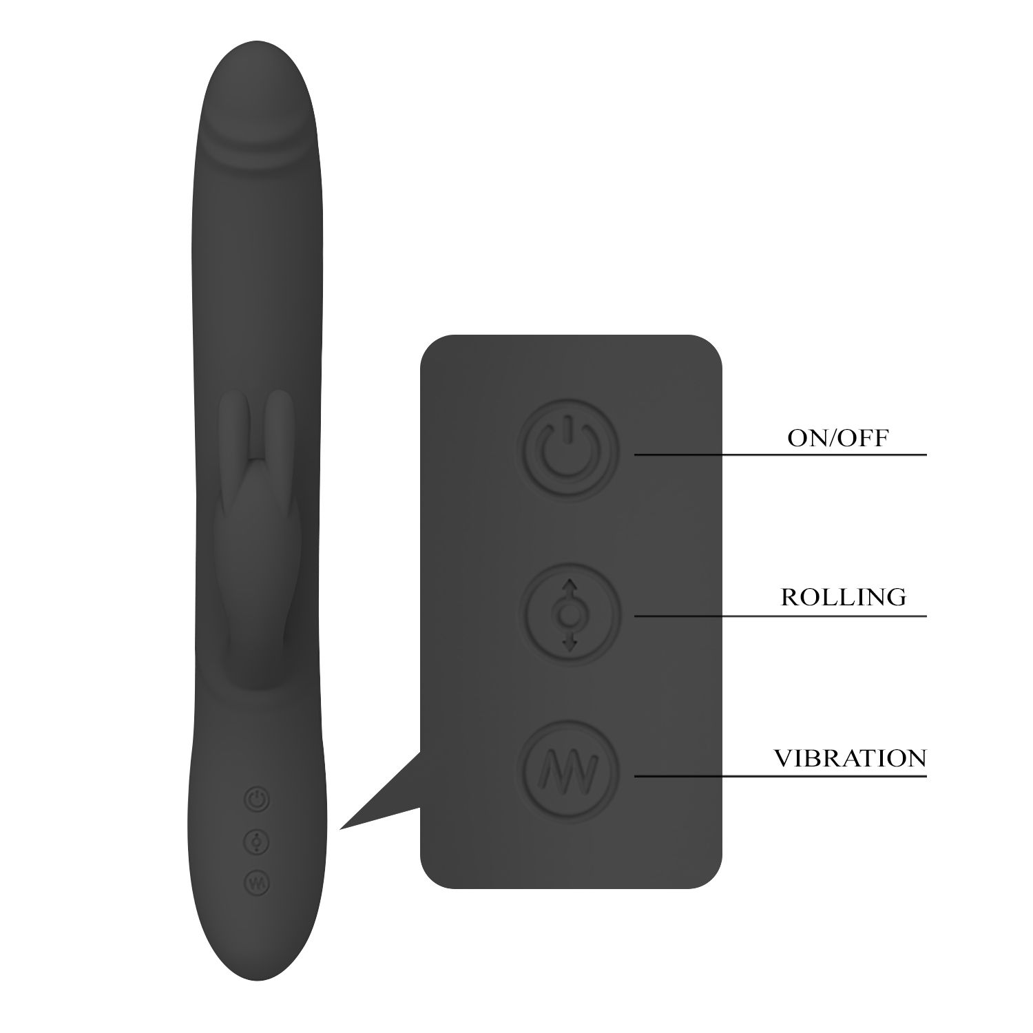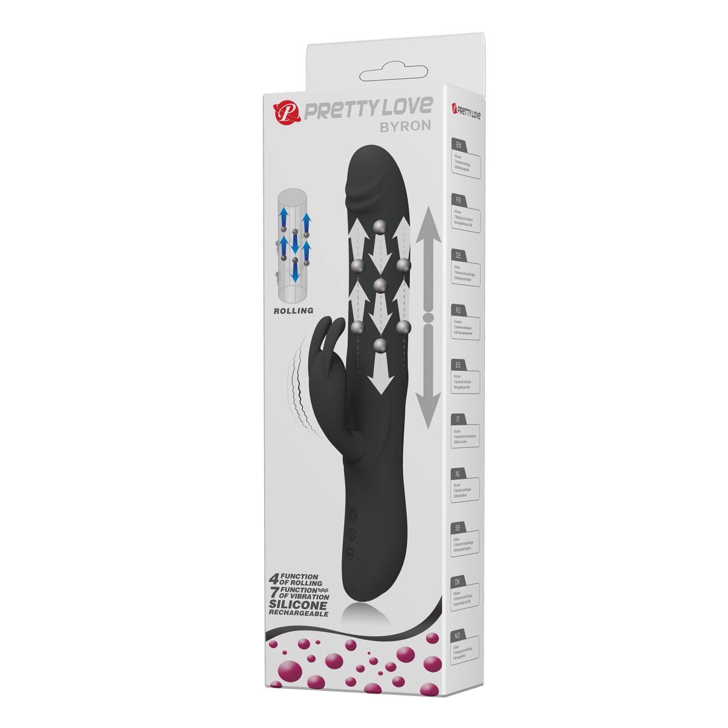 Многоскоростной перезаряжаемый вибратор. Имеет клиторальный стимулятор в виде зайчика. Вращающиеся шарики снабжены 4ю режимиами ротации. Гладкая поверхность. Материал - силикон. Имеет 7 режимов вибрации, управление производится при помощи сенсорных кнопок у основания игрушки. Рабочая длина - 16 см.
