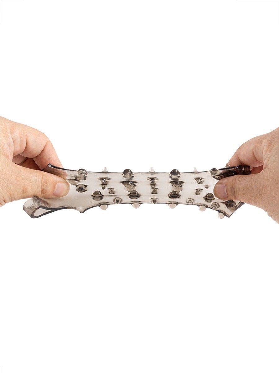 Оригинальная насадка на пенис с эрекционным кольцом для мошонки и небольшими шипиками внесёт разнообразие в интимную жизнь, сделает её насыщенной и яркой. Эрекционное кольцо на мошонку усилит и продлит эрекцию. Шипики будут дополнительно стимулировать стенки влагалища. Интимный аксессуар хорошо растягивается, подходит для половых членов разных размеров. Может использоваться в сочетании с вибратором или фаллоимитатором. Прост в применении и уходе.