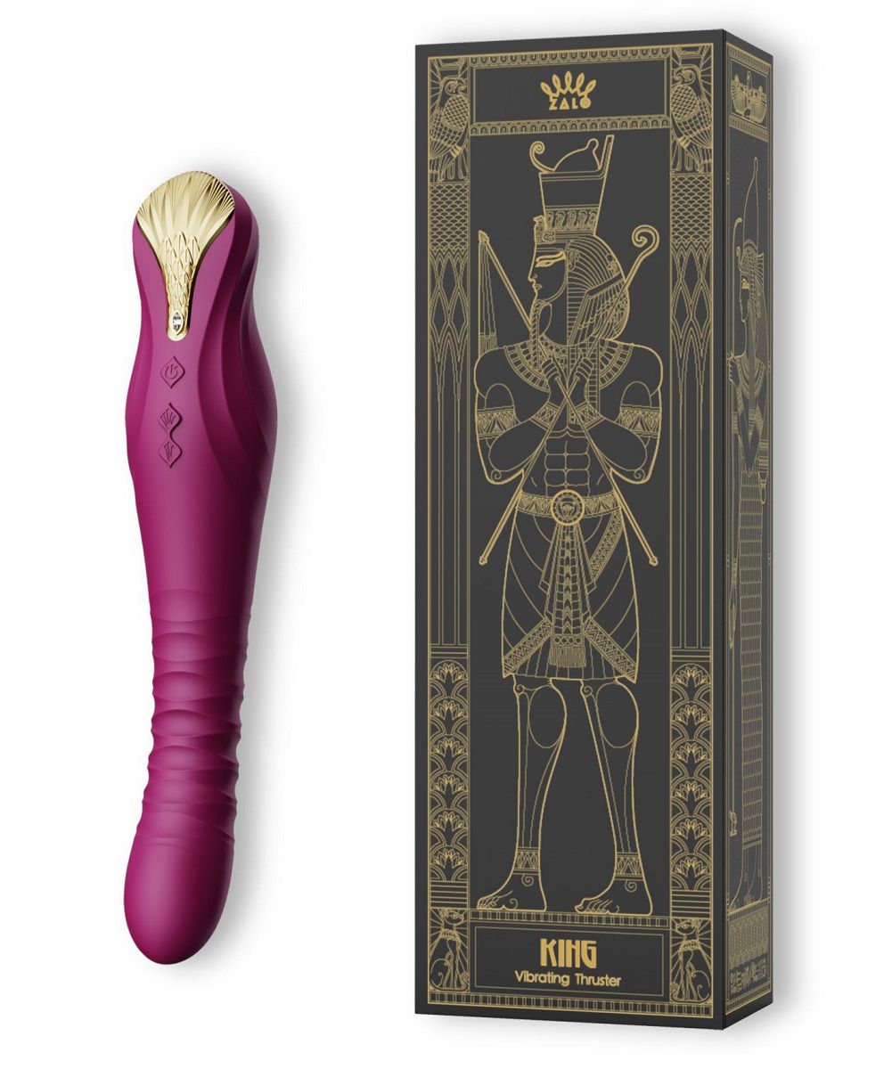 Фиолетовый вибратор Zalo King с возвратно-поступательными движениями и управлением через приложение подойдёт тем, кто хочет совместить выразительный дизайн, премиальные материалы и яркие ощущения от глубокой стимуляции зоны G.