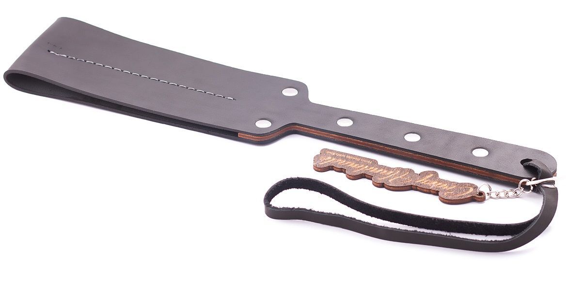 Гладкий мягкий удлиненный пэддл с петелькой для подвешивания выполнен из натуральной кожи. Длина ударной части - 15 см. Ширина - 6,5 см.