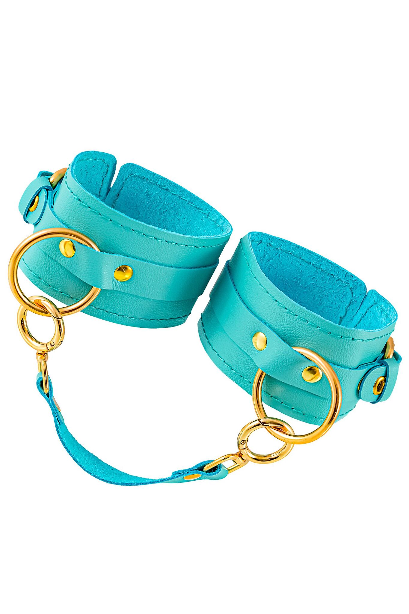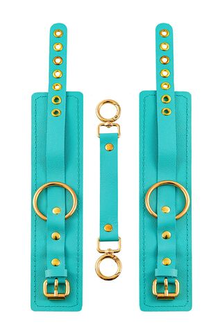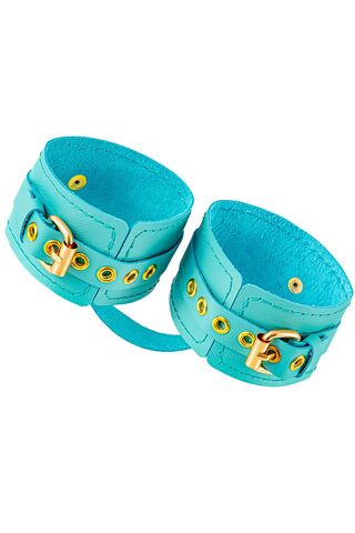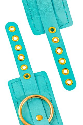 Готовы играть по-взрослому? Не бойтесь своих желаний! Основатели бренда уверены: лучший способ избавиться от искушения - поддаться ему! Добавьте пикантную деталь в ролевую игру и воплотите самую смелую сексуальную фантазию в реальность! Эти однослойные кожаные голубые (бирюзовые) оковы со строчкой в тон кожи могут стать стильным аксессуаром, а могут послужить вашим целям по своему прямому назначению. Частичное обездвиживание и невозможность двигать руками или ногами дают вам полную власть над партнером – взрослые игры для взрослых. Наличие двух колец и карабинов, соединенных между собой кожаным ремешком, позволяет использовать изделие как раздельно – аксессуар-манжеты, так и как оковы для фиксации. К широким металлическим кольцам также можно присоединить и другие аксессуары при помощи карабинов. Благодаря универсальному размеру оковы могут использоваться и мужчинами, и женщинами. Размер легко регулируется с помощью металлических пряжек, органично вписывающихся в общий стиль. Длина манжет – 25 см, ширина - 6,5 см. Длина сцепки – 17 см.