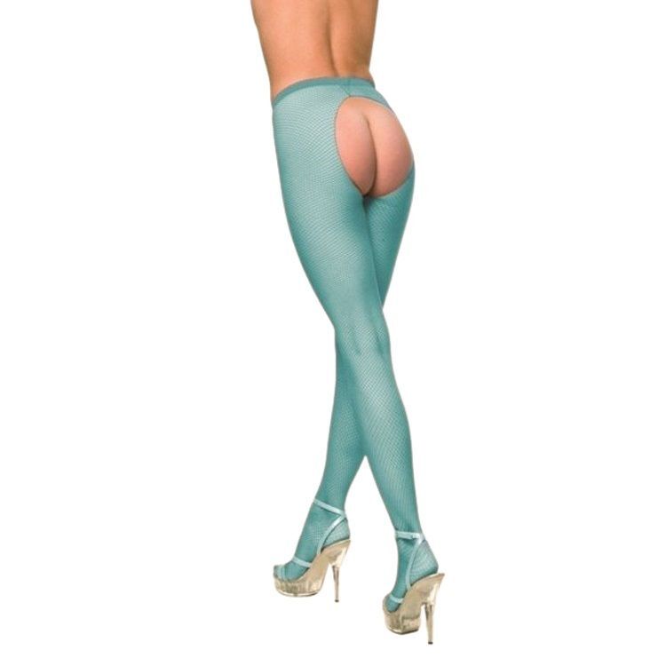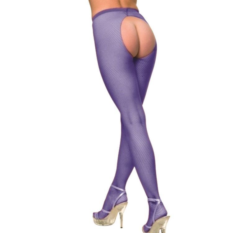 Женские эластичные колготки на тонкой резинке. Колготы полностью обнажают ягодицы, в мелкую сетку.
