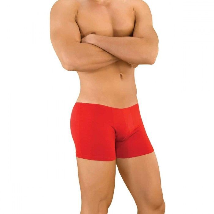 Красные удлиненные боксеры для мужчин из гладкой, тянущейся ткани, с низкой посадкой.
