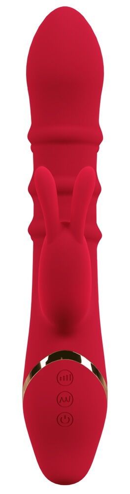 Вибратор-кролик с 3 массажными кольцами. Стимулирует вагину и клитор одновременно. Массажные кольца на валу двигаются вверх и вниз. 10 режимов вибрации в наконечнике вала и клиторе. Массаж подвижными кольцами в 3 режимах. Силикон с шелковистой мягкой на ощупь текстурой. Водонепроницаемый. Перезаряжаемый - в комплекте USB-кабель для зарядки. Рабочая длина - 13,3 см.