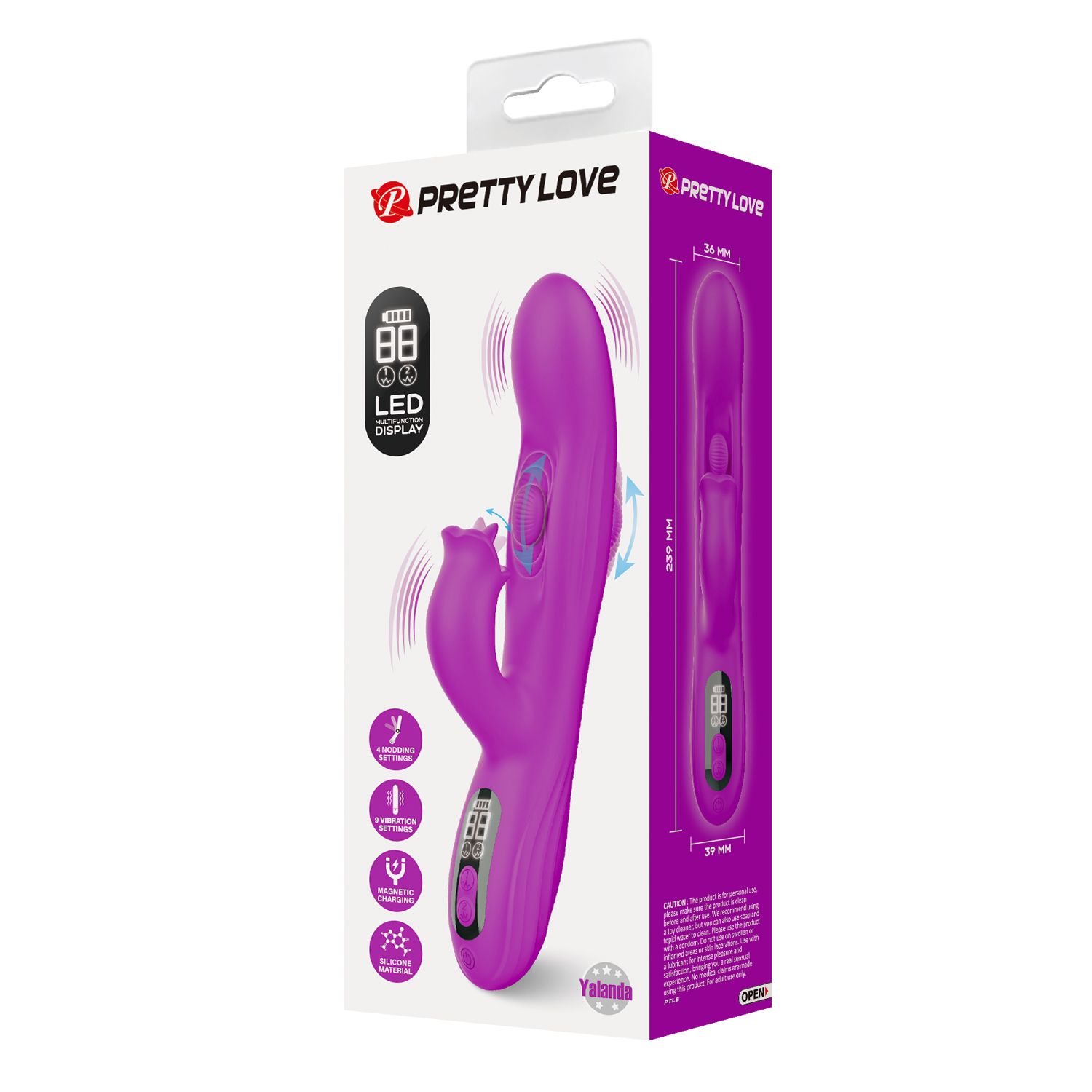 Лиловый вибромассажёр-кролик со стимуляцией точки G Yalanda. 9 режимов вибрации, 4 режима кивания. Рабочая длина - 13,3 см.