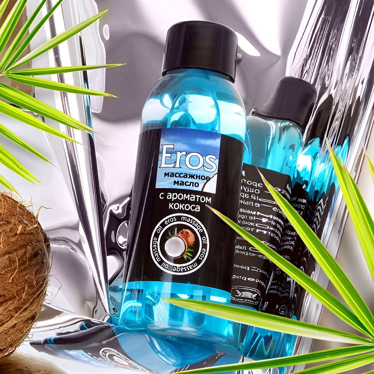 Масло массажное «Eros Tropic» для эротического массажа. Вызывает ощущение тепла, особенно при дуновении. Повышает чувствительность. Имеет приятный аромат кокоса и сладкий вкус. Обеспечивает длительное скольжение. Легко смывается водой.