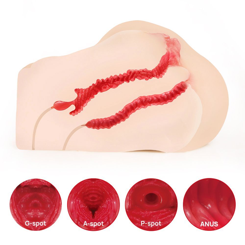 Jenny Onahole — это реалистичный мастурбатор-полуторс, созданный с максимальной точностью до мелочей. Каждый этап — от подбора модели до ручной обработки — направлен на достижение абсолютного реализма. Внутренняя структура повторяет анатомию возбуждённой женщины, включая точку G, слизистую оболочку и складки влагалищных стенок, а также анальное отверстие с уникальной текстурой. В комплекте можно найти специальные вибровставки с шариками, которые вводятся в специальные отверстия мастурбатора параллельно вагинальному и анальному каналам. При включении движение шариков и вибрация имитируют оргазмические спазмы вагинальных мышц, что еще больше усиливает удовольствие. Вагина: Узкое входное отверстие (1 см в диаметре) — обеспечивает плотное обхват и сильную стимуляцию при проникновении. Реалистичная внутренняя структура — повторяет анатомию молодой женщины с точкой G, толстой слизистой оболочкой и складками влагалища. Специальный рельеф — выпуклые стимулирующие бугорки и спиральные выступы создают невероятно реалистичные ощущения. Анус: Реалистичная структура — повторяет настоящий анус с многочисленными бугорками. Спиральные складки — обеспечивают интенсивную стимуляцию, напоминающую поглаживания. Фантазия анального секса — благодаря толстым анальным складкам, внутренней кривизне и бугоркам вы почувствуете себя в новом мире удовольствия. Двойной слой материала: Внешний слой — эластичный и упругий, обеспечивает реалистичное ощущение кожи. Внутренний слой — мягкий и нежный, передаёт малейшие нюансы анатомии. Безопасность и гигиена: Изготовлен из нетоксичного эластомера TPE, прошедшего строгие международные сертификации. Легко моется, что позволяет поддерживать чистоту и гигиену. Размеры - 37 х 26,5 х 15,5 см.
