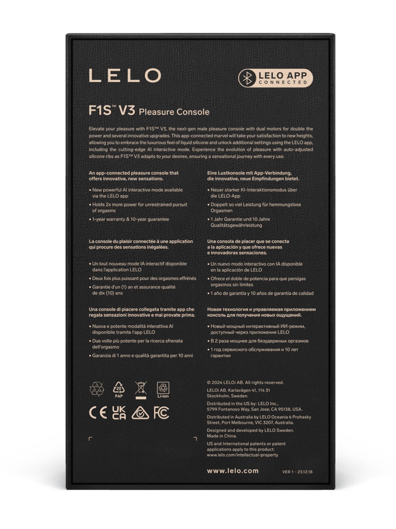 F1S V3 — это секс-игрушка нового поколения, которая оснащена усовершенствованными функциями, чтобы подарить вам совершенно новый опыт удовольствия. Она не пытается имитировать какие-либо известные ощущения, такие как фелляция или проникновение она стимулирует фаллос звуковыми волнами со всех сторон, не требуя дополнительных толчковых движений. Мастурбатор подключается к приложению и имеет 8 настроек вибрации, приводимых в действие 2 моторами. Благодаря интерактивному режиму ИИ, он в режиме реального времени преобразует каждое ваше движение в зашифрованную обратную связь и реагирует индивидуально настроенными вибрациями вдоль вашего пениса. Результатом является сенсационное чувство погружения, окруженное автоматически регулируемыми ребрами из жидкого силикона, которые еще больше усиливают это уникальное ощущение. Как работает интерактивный режим ИИ Внутри F1S V3 датчик обратной связи производительности, на основе анализа движений устройства, передает зашифрованную информацию в реальном времени через Bluetooth. Затем режим AI INTERACTIVE в приложении LELO обрабатывает данные в реальном времени, идеально синхронизируя интенсивность мотора и реакцию движения с движением устройства. Таким образом, F1S V3 обеспечивает приятный, плавный и уникальный опыт для каждого пользователя. F1S V3 использует технологию SenSonic для генерации звуковых импульсов, которые резонируют вокруг пениса для совершенно нового ощущения. Автоматически регулируемые мягкие, эластичные ребра из жидкого силикона дополнительно усиливают стимуляцию. Запатентованная технология Cruise Control, гарантирует отсутствие снижения интенсивности. Новые силиконовые ребра обеспечивают циркуляцию воздуха, исключая создание воздушных карманов и обеспечивая дополнительную стимуляцию. Два синхронизированных мотора стимулируют нервные окончания и ствол полового члена по всей длине, обеспечивая ощущения без необходимости движения руки. Стимулятор 100% водонепроницаемый, идеален для использования в душе и ванне. Зарядка 2 ч. Время непрерывной работы до 2 часов. Рабочая длина - 11 см.