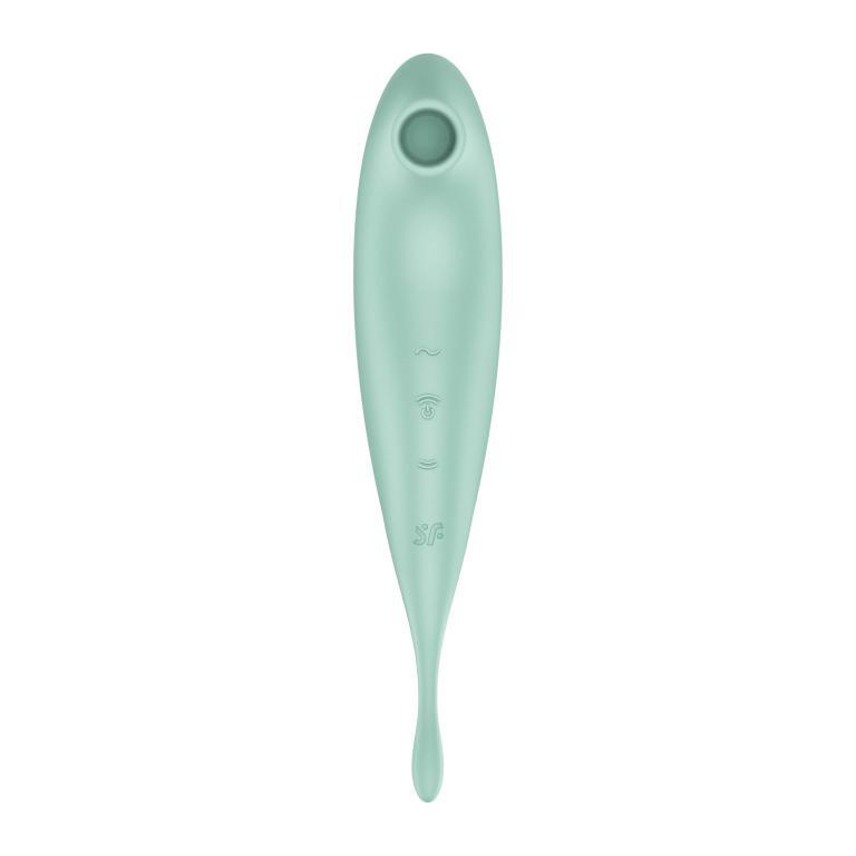 Вибромассажер Twirling Pro+ Connect App - перезаряжаемый точечный стимулятор клитора с управлением через приложение. Наконечник игрушки действует как воздушно вакуумный стимулятор и имеет 11 уровней интенсивности. Овальный наконечник на нижнем конце узкого стержня идеально подходит для целенаправленной стимуляции всего тела и эрогенных зон. Наконечник имеет 12 программ вибрации. Прямая форма игрушки хорошо ложится в руку при использовании. Шелковистый, приятный для кожи силикон вибратора отличается особой гибкостью и мягко скользит по телу. Управление игрушки доступно через приложение Satisfyer Connect.