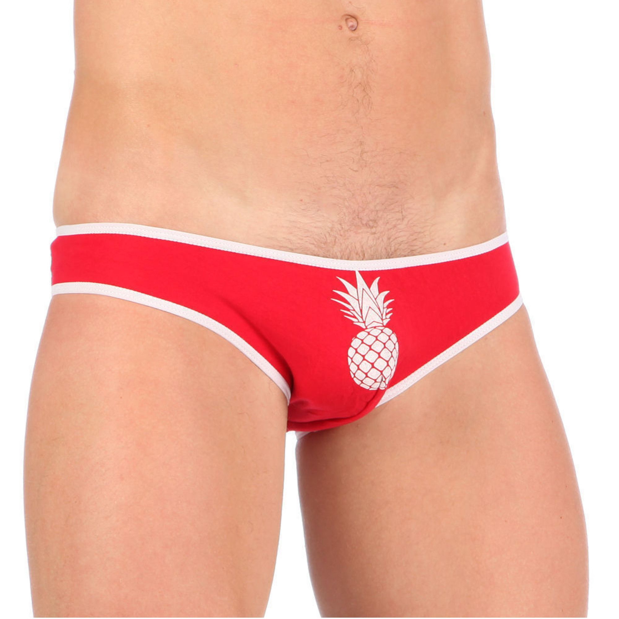 Набор из 3 эротических трусов-слипов с принтом-ананасом (белые, красные и желтые).