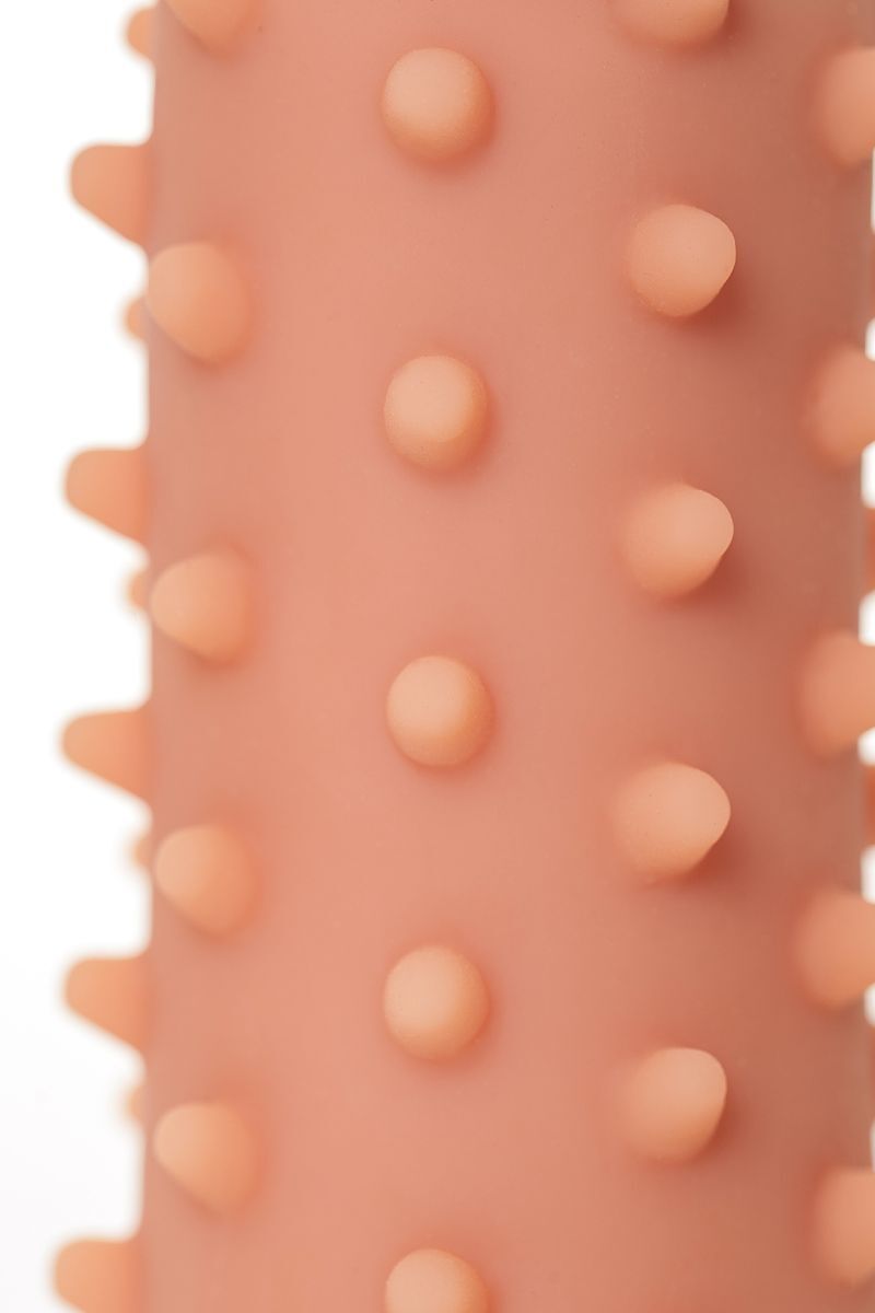 Увеличивающая насадка с впечатляющей дополнительной стимуляцией решает сразу 3 задачи: дарит удовольствие обоим партнерам, позволяет экспериментировать с секс-игрушками и выводит интимную жизнь на более высокий уровень. Желанное разнообразие. Насадка придает члену внушительный объем и новую форму, поэтому как нельзя лучше подходит для сценариев - секс с незнакомцем. При этом выразительный рельеф с выпуклыми пузырьками привносит незабываемый эффект новизны в ощущения партнерши. Зашкаливающее удовольствие для двоих. В то время как женщина испытывает потрясающее чувство наполненности и получает интенсивную стимуляцию стенок влагалища, мужчина наслаждается более продолжительным половым актом и возбуждающими оргазмами партнерши. Яркие эксперименты. Киберкожа прекрасно передает всю мощность вибраций, поэтому насадку можно использовать не только с партнером, но и с любимым вибратором. Вы также оцените какона превосходно тянется и легко надевается на член, обеспечивая при этом плотное и комфортное прилегание. Как быстро принимает температуру тела и насколько она приятна на ощупь.
