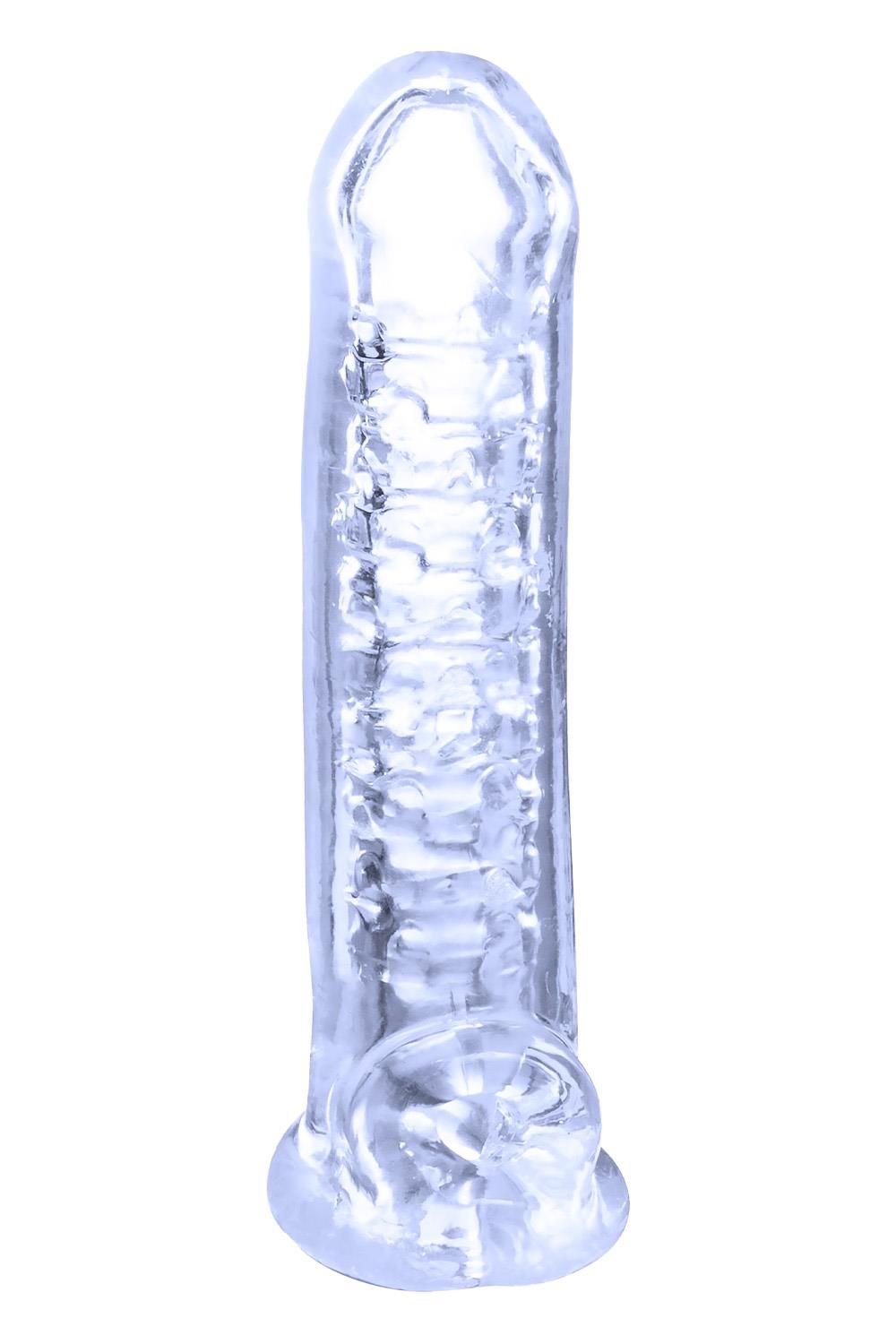 Прозрачная насадка-удлинитель Stretchy Touch. Эластичная и приятная на ощупь. Длина полости - 13,9 см.