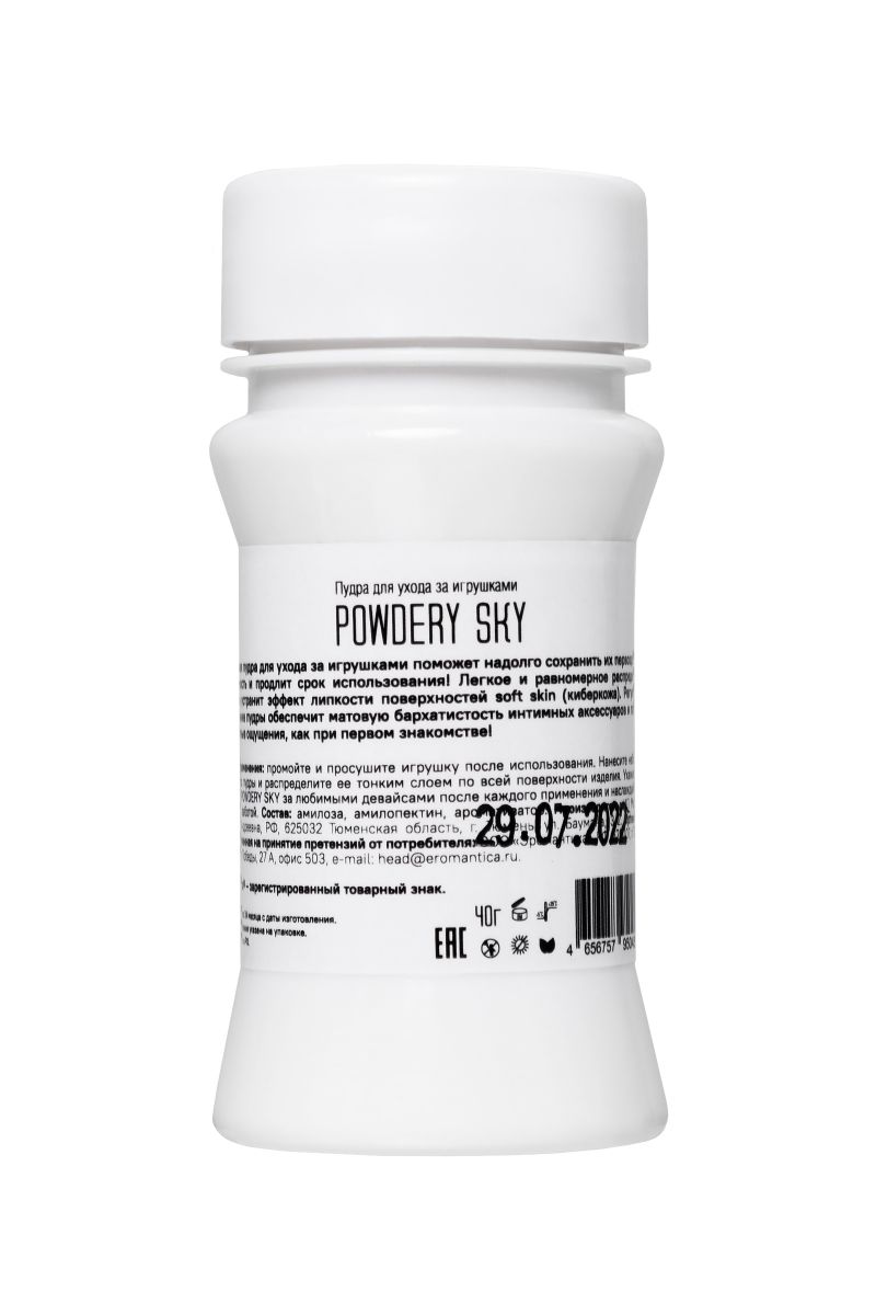 Невесомая пудра с ароматом мятной свежести для ухода за игрушками поможет надолго сохранить их первозданную эластичность и продлит срок использования! Легкое и равномерное распределение средства устранит эффект липкости поверхностей soft skin (киберкожа). Регулярное применение пудры обеспечит матовую бархатистость интимных аксессуаров и подарит комфортные ощущения, как при первом знакомстве! Ухаживайте с помощью Powdery Sky за любимыми девайсами после каждого применения и наслаждайтесь ее приятной заботой.