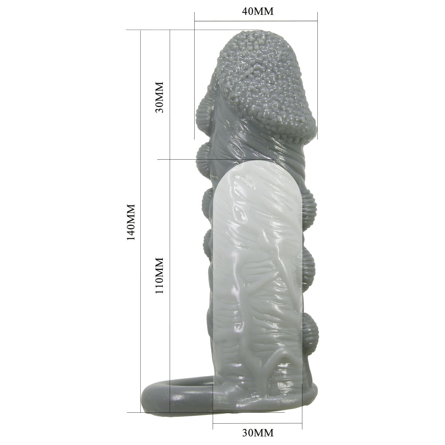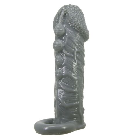 Эта эластичная насадка добавляет дополнительную толщину и продлевает удовольствие. Одевая ее с петлей, которая крепится на мошонку, можно задержать эякуляцию и достичь более интенсивного оргазма. Мягкая текстура с точечными вкраплениями усиливает ощущения. Длина полости - 11 см, диаметр - 3 см.