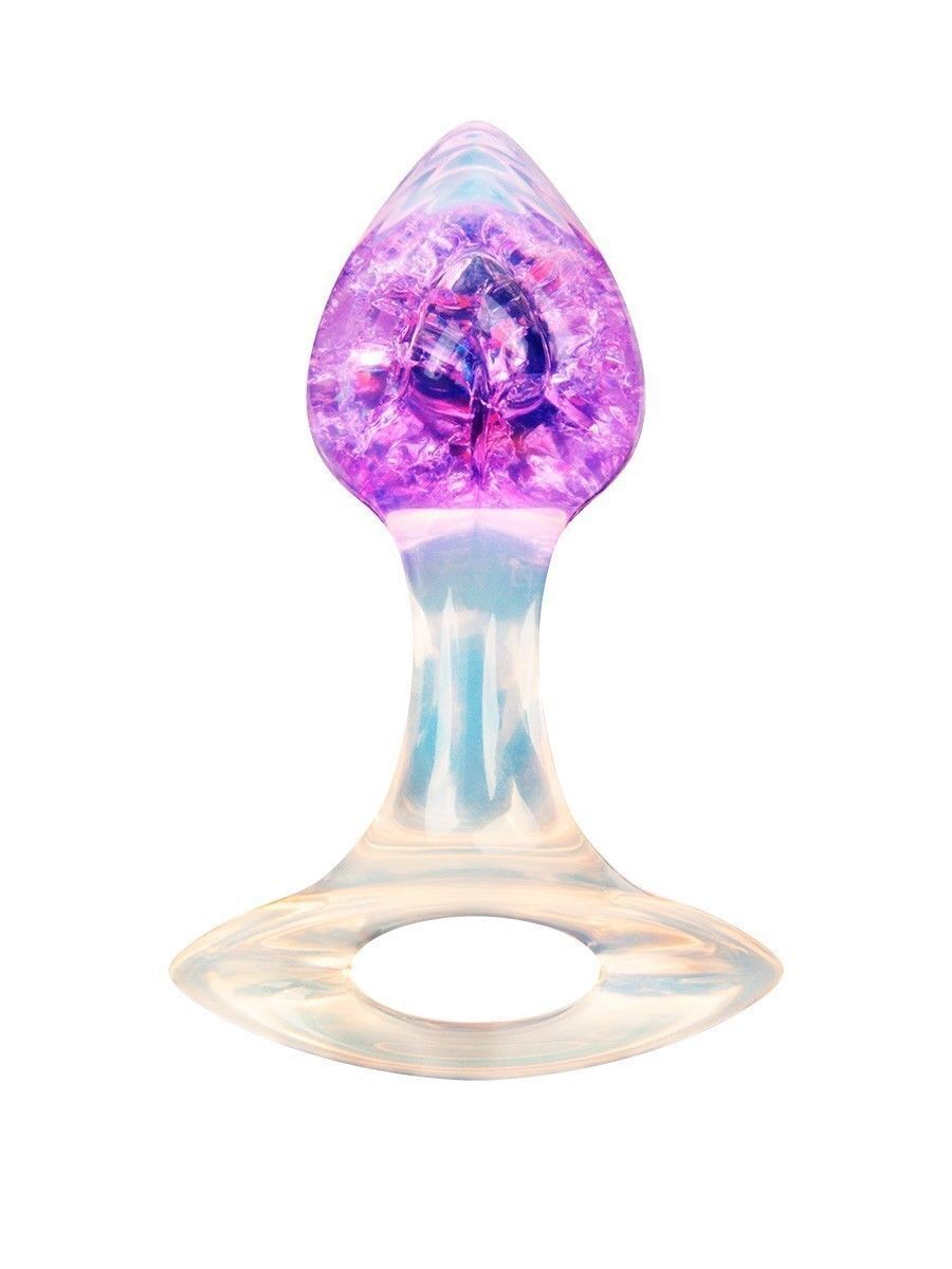 Сиреневатая анальная пробка с ручкой - 8,5 см.