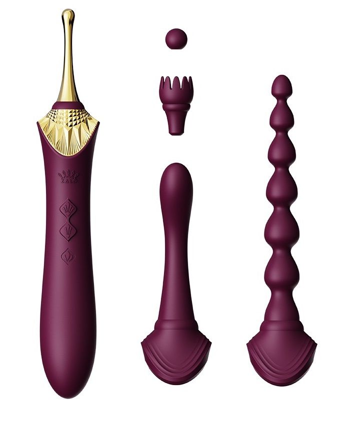 Сливовый вибратор с 4 сменными насадками Bess 2 от Zalo создан для точечной стимуляции клитора и дополнительных чувствительных зон. Модель подойдёт тем, кто любит разнообразие ощущений и ценит возможность настраивать удовольствие под своё настроение.