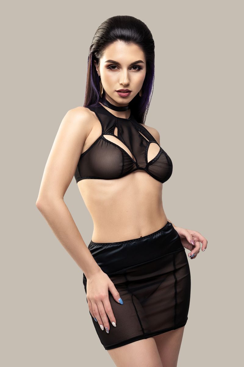 Юбка Evenness из тонкой прозрачной эластичной сетки и стрейч-сатина облегает бедра, ощущается невесомой, не сковывают движений, но визуально меняет силуэт. Шелковистая поверхность материала дарит приятные ощущения при прикосновении. Современные элементы дизайна тешат женское самолюбие. Матовая кокетка и аккуратный вырез сзади подчеркивают движение бедер при каждом шаге. Провокационная длина слегка прикрывает ягодицы. Интимные зоны, закрытые для прикосновений, но доступные взгляду подчеркивают чувственность образа.