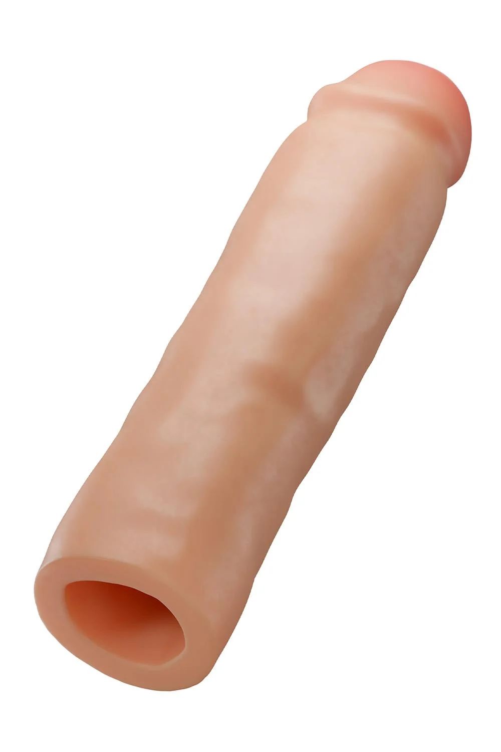 Телесная насадка-удлинитель Tenacity. Реалистичная на вид и на ощупь. Длина полости - 17,1 см.