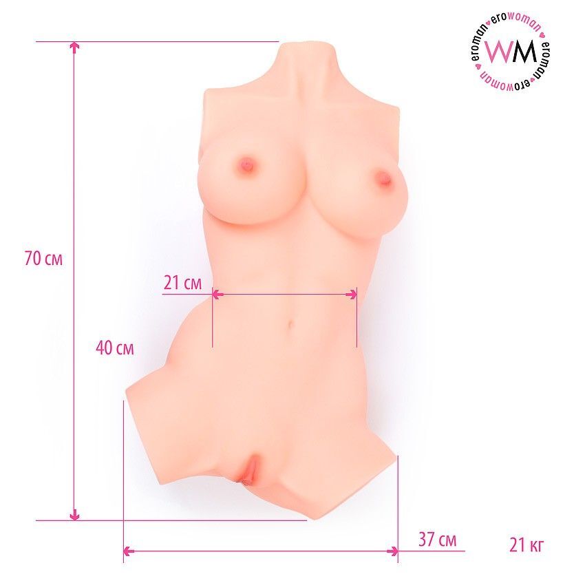 Секс-игрушка с потрясающими формами сведёт с ума и подарит незабываемое удовольствие. Роскошная грудь с хорошо очерченными сосками, влагалище и анальное отверстие с рельефной внутренней поверхностью, приятный на ощупь материал дадут ощущение максимальной реалистичности. Интимный аксессуар подходит для вагинального и анального секса. Благодаря отсутствию внутреннего каркаса, изделие обладает хорошей эластичностью.