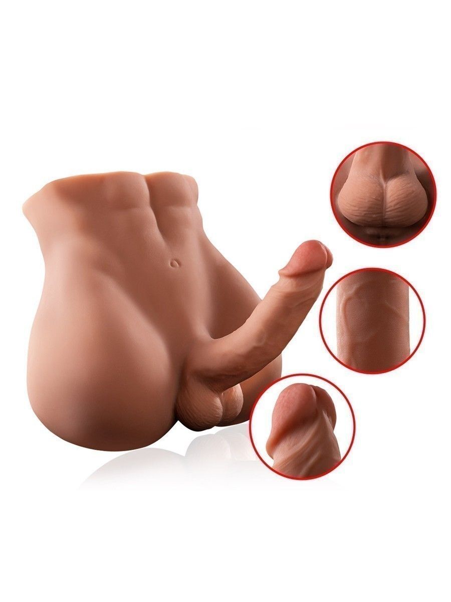 Великолепная секс-игрушка для всевозможных эротических удовольствий. Внесёт яркость и разнообразие в интимную жизнь. Гаджет изготовлен из приятного на ощупь материала. В арсенале игрушки: - роскошный половой член с мягкой головкой и мошонкой, - режимы возвратно-поступательных движений с вибрацией в пенисе, - анальное отверстие с рельефной внутренней поверхностью, - аппетитные упругие ягодицы, - «накаченный» торс с гладко «выбритым» пахом, - мягкая нежная поверхность, дарящая приятные тактильные ощущения. Секс-игрушка выглядит максимально реалистично. Половой член может наклоняться в разные стороны, позволяя использовать изделие в разных позах. Внутри пениса находится жёсткий стержень. Сам интимный аксессуар не имеет внутреннего каркаса, прекрасно мнётся и сжимается. Яркая коробка наглядно демонстрирует все возможности девайса. Включение/выключение возвратно-поступательных движений и вибрации в пенисе: нажать и несколько секунд удерживать кнопку вкл./выкл. на корпусе изделия. Должен загореться/погаснуть световой индикатор. Переключение режимов: краткое нажатие той же кнопки. Возвратно-поступательные движения и вибрация включаются и работают только одновременно. Размеры - 24х26х15 см. Рабочая длина - 15 см, диаметр - 4 см.