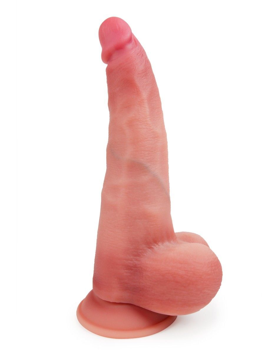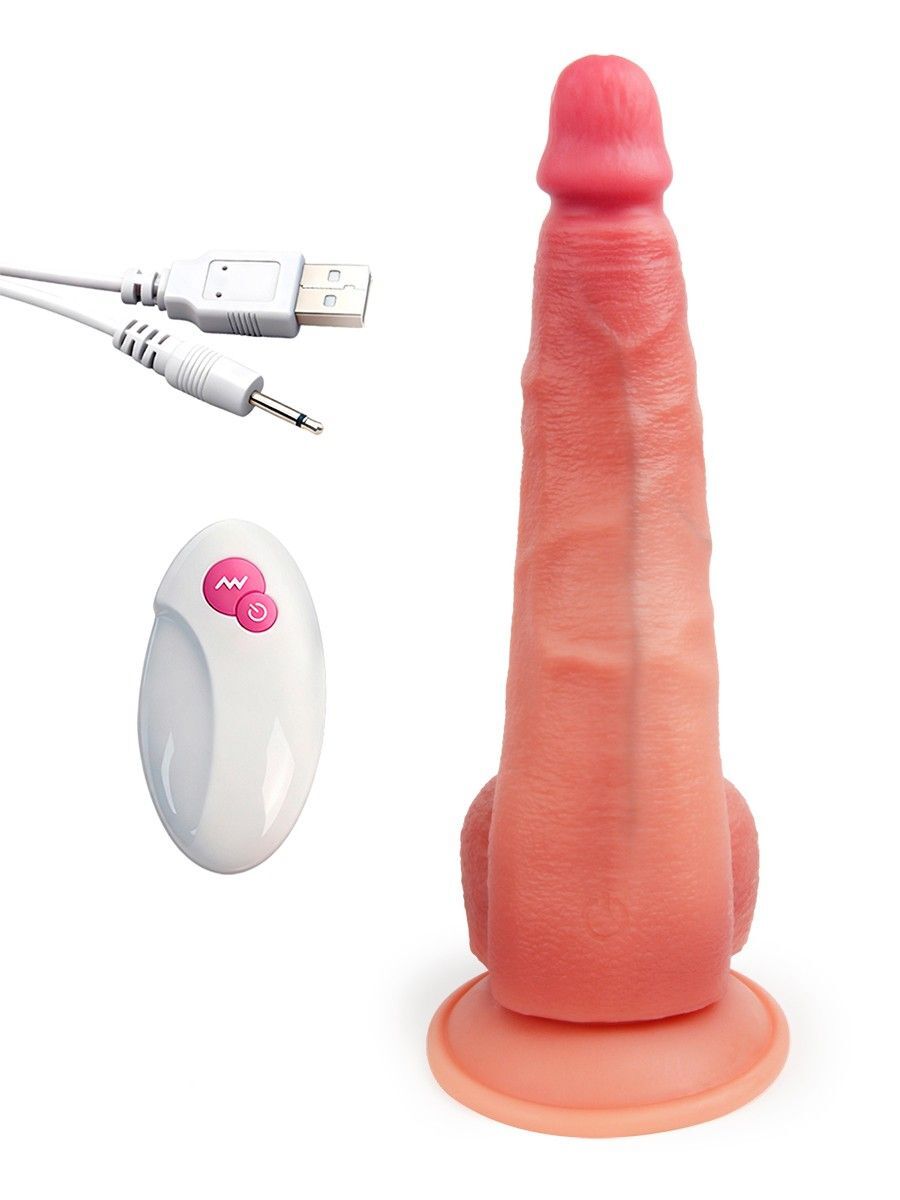 Роскошный вибромассажёр с дистанционным пультом управления для тех, кто выбирает большие размеры и любит ощущение максимальной заполненности. Ярко выраженная головка, мощный ствол с выпуклыми венками, объёмная мошонка притягивают и разжигают желание. 10 режимов вибрации усиливают возбуждение и доводят до пика наслаждения. Изогнутая форма позволяет стимулировать точку G.Секс-игрушка гнётся в разные стороны, что существенно расширяет возможности её использования. Подходит для различных видов интимной близости и всевозможных поз. Может стать полноценным участником любовной игры в паре или подарить незабываемый эротический экстаз во время индивидуальной мастурбации. Широкая присоска надёжно фиксирует гаджет на ровной поверхности. Благодаря мягкому материалу вибромассажёр можно мять, сжимать и скручивать. Рабочая длина - 22 см.