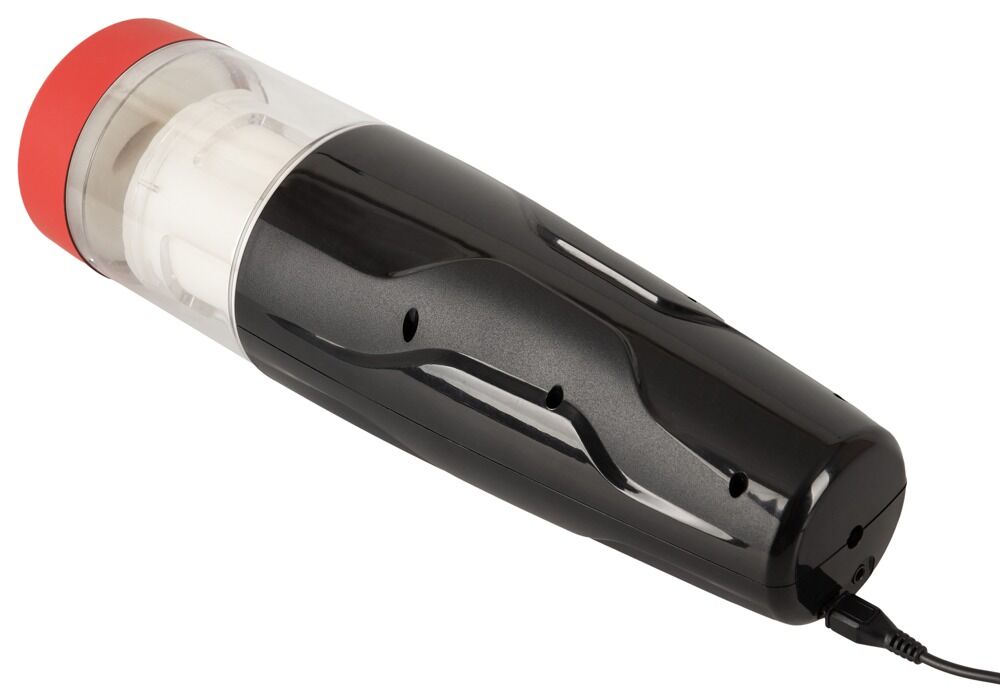 Мастурбатор с электроприводом и защитным колпачком. Функция левого/правого вращения и толчка в 10 режимах. В комплекте наушники для функции стонов (3 режима). Подсветка красным светодиодом по запросу. Съемная мягкая втулка со стимулирующими насадками. Перезаряжаемый - в комплекте USB-кабель для зарядки. Рабочая длина -11 см.