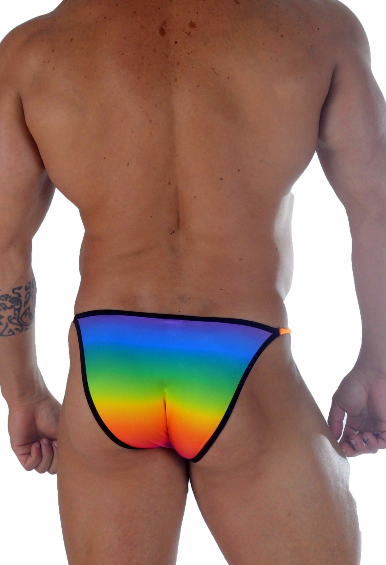Яркие радужные трусы-танга.