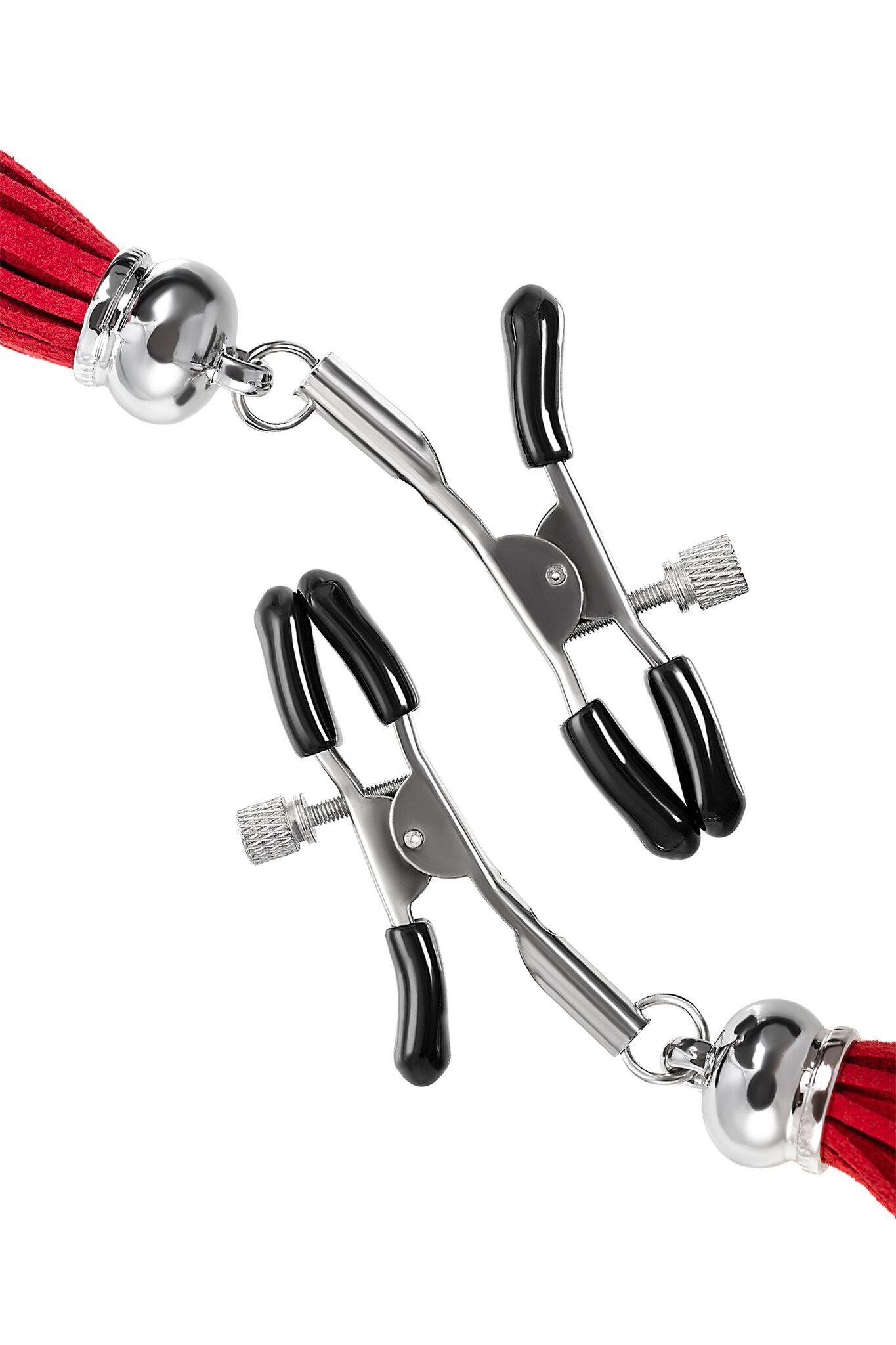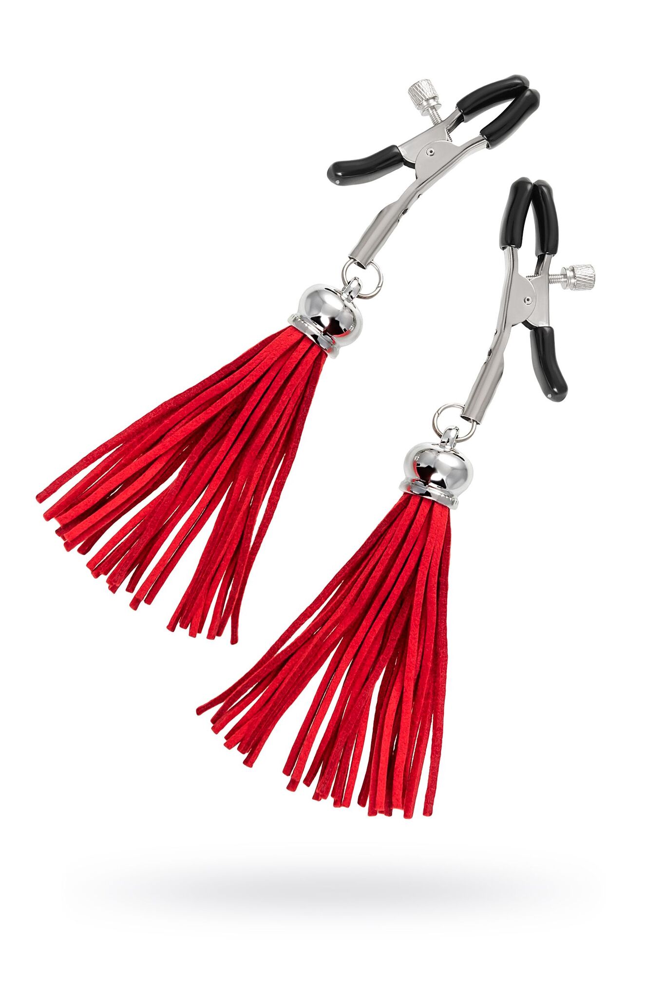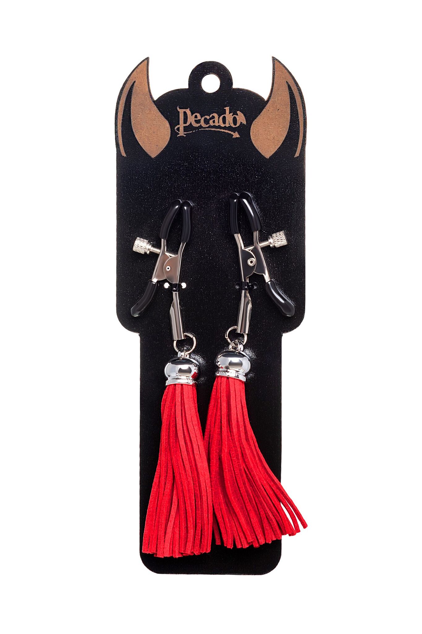 Хотите усилить ощущения от страстных игр с партнером? Увеличить степень возбуждения до невозможного можно с помощью зажимов-прищепок ручной работы от Рecado. Невероятно сексуальный аксессуар пробудит фантазию и повысит чувственность эротических зон. Мягкие резиновые накладки оберегают соски от повреждений. Металлический винт регулирует степень сжатия зажимов: от нежно-приятного до сильно-грубого. На концах черные резиновые наконечники, для безопасного воздействия на нежные участки тела. Компактный размер удобно вмещается как в женскую, так и в мужскую руку. Кисточки из натуральной замши не только визуально украшают эротический атрибут, но и еще утяжеляют его. Для самых смелых и искушенных любителей доминировать и подчиняться. Длина кисточки - 8,5 см.