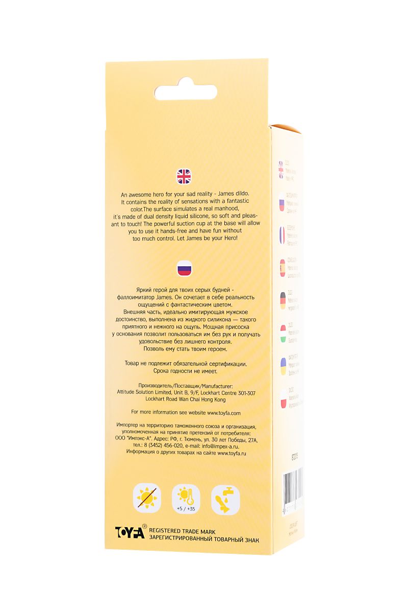 Яркий герой для твоих серых будней - фаллоимитатор James Он сочетает в себе реальность ощущений с фантастическим цветом. Внешняя часть, идеально имитирующая мужское достоинство, выполнена из жидкого силикона — такого приятного и нежного на ощупь. Мощная присоска у основания позволит пользоваться им без рук и получать удовольствие без лишнего контроля. Позволь ему стать твоим героем. Рабочая длина - 15,5 см.
