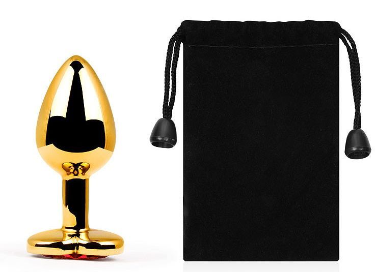Золотистая анальная пробка с красным стразом-сердечком - 7 см.